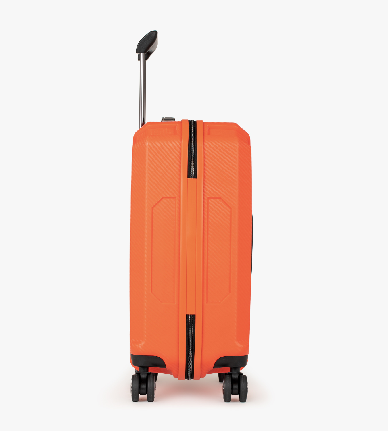 高い強度のポリプロピレンは衝撃に強く大切な荷物を守り、カーボン調の表面加工は傷を目立ちにくくします。